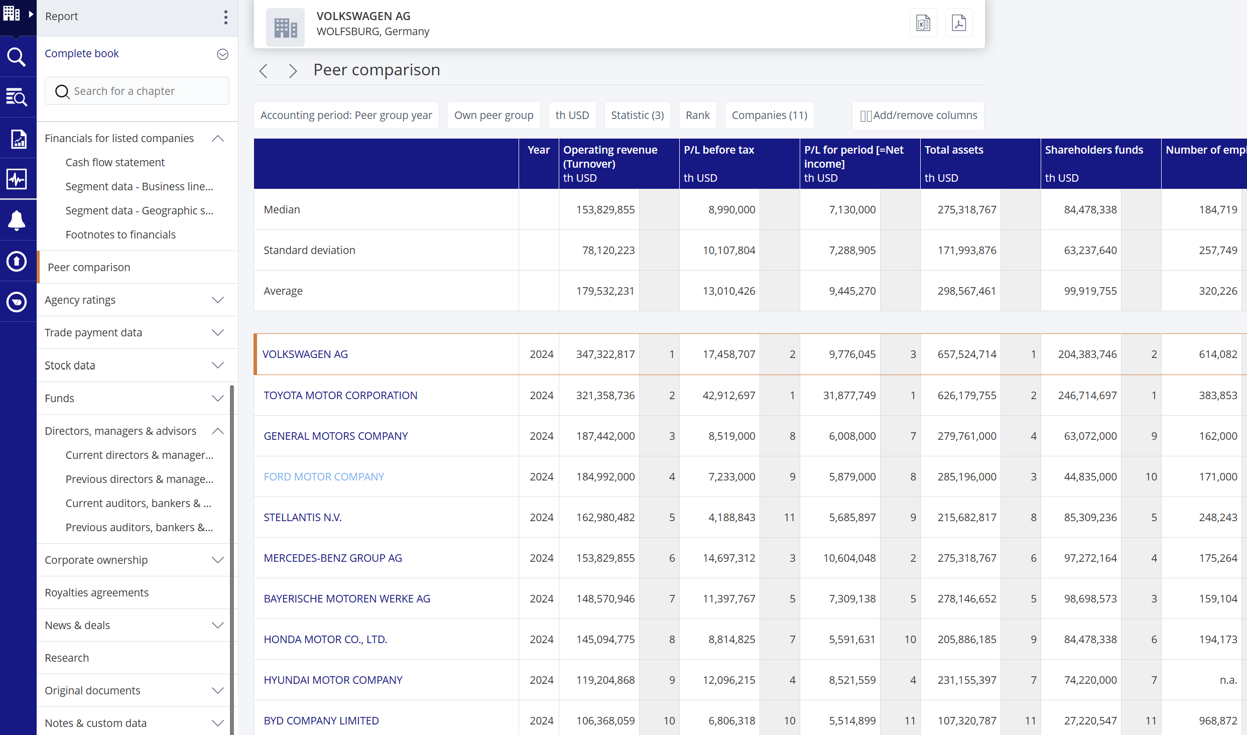 Company Financial (Peer Comparison) Analysis by Orbis.